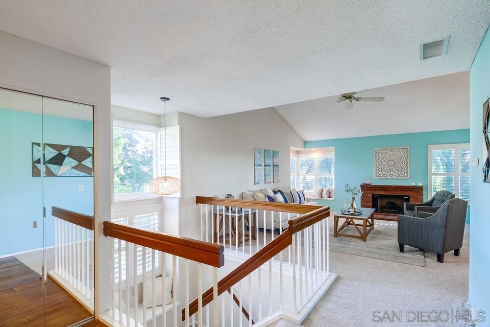 Rarely available END-UNIT townhome! The largest floor plan in one of the best locations in the highly sought after Charter Point community. Vaulted ceilings, large dining area, an optional office space and sunset views from the balcony! This ideal 3 bedroom 2.5 bath is in move-in ready condition and will check everything on your list. Direct access, attached 2 car garage. Separate laundry room off the kitchen. The gated front patio is perfect for entertaining. Downstairs you will find 3 bedrooms including a spacious primary retreat with a walk-in closet, en-suite bathroom and private patio overlooking a lovely shaded greenbelt. No neighbors behind you! An ideal space for kids to play or walk your pets. VA & FHA approved. Convenient location just around the corner from Southwestern College, and walking distance to many shops and restaurants.