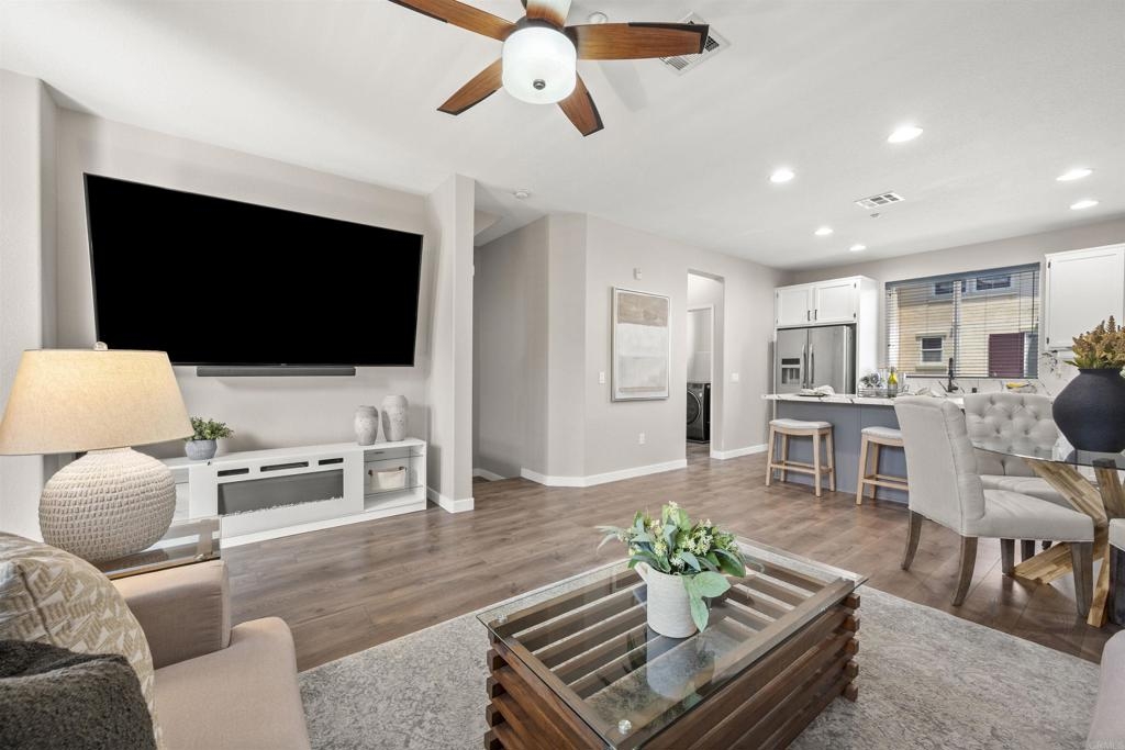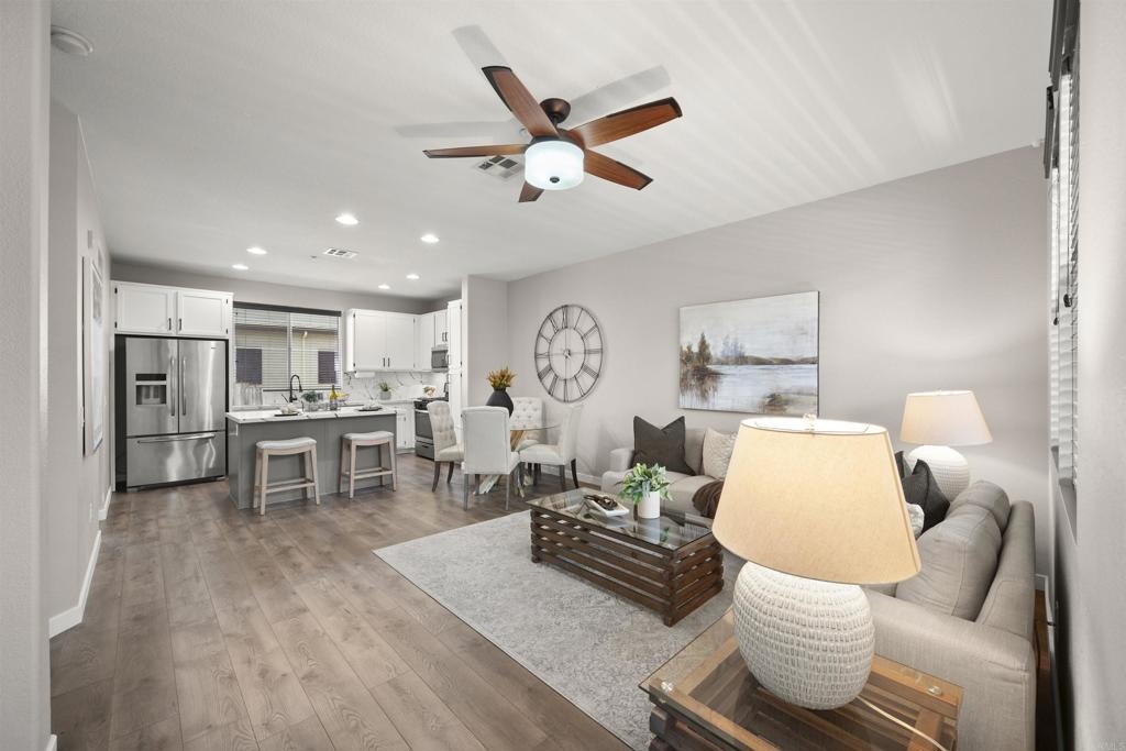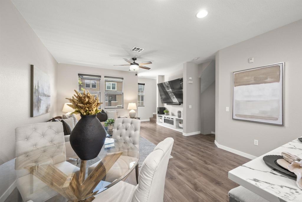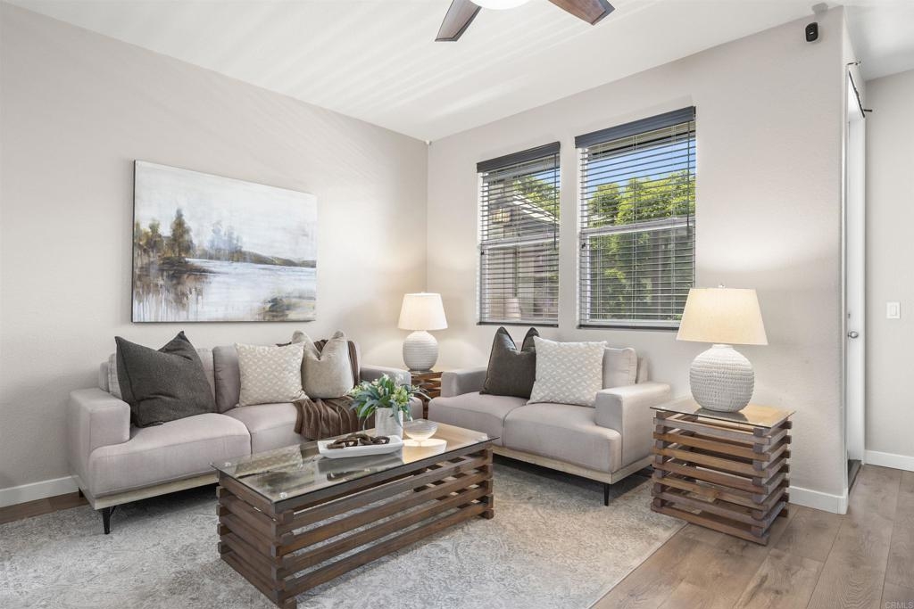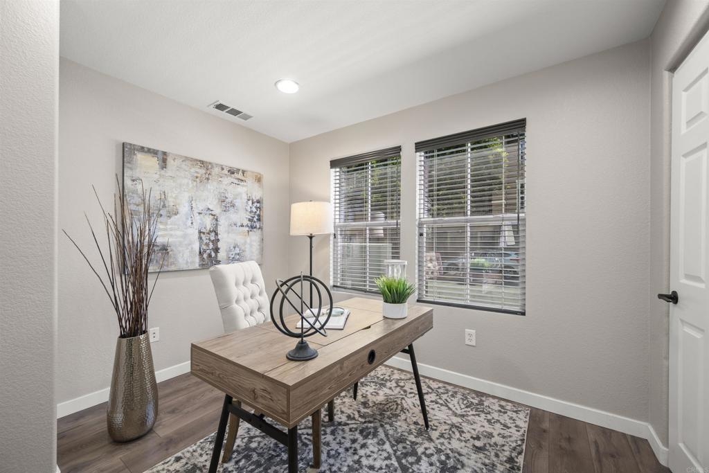 Charming Townhouse in Greystone at Eastlake Vistas. This amazing move-in ready townhouse features 3 bedrooms, 2.5 bathrooms, approx. 1332 sqft., with luxury vinyl flooring throughtout. The first floor bedroom offers a flexible space, perfect for a home office or guest bedroom, with direct access to two car garage enhanced by Swisstrax flooring. On second level, enjoy open floor, including modern kitchen with an island, stainless steel appliances and custom quartz countertops. The dining area and great room provide seamless access to a balcony, The third floor host two master suites, each with updated bathrooms featuring new light fixtures and quarts counterops. This property is equipped with Nest Thermostat, Eufy Security Cameras and Eufy Smart Lock. Enjoy all the Amenities of Greystone and Community of Eastlake Vistas has to offer. Close to high rated schools, Olympic Training Center, Shopping, Restaurant and Toll Road 125, Buyers and buyer's agent to verify everything herein before close of escrow.