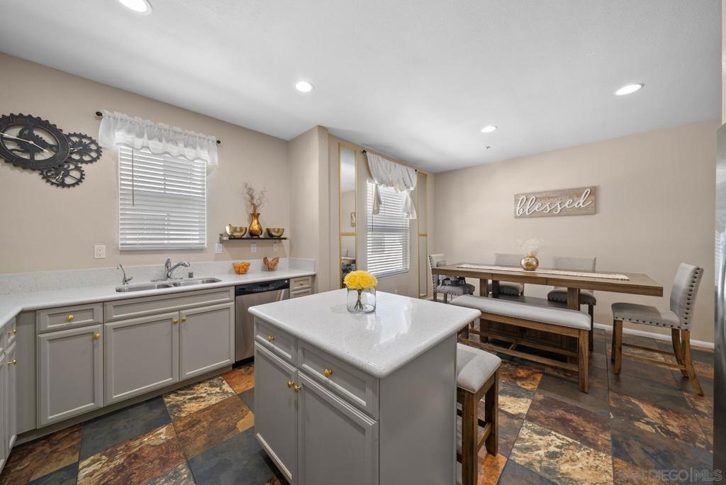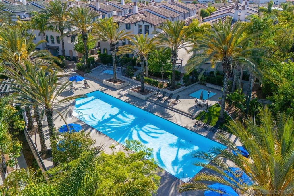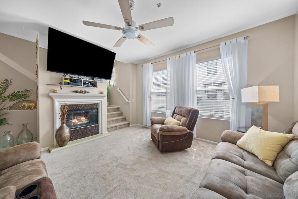 Welcome to Agave/Saguaro Community located in the Winding Walk Neighborhood in Otay Ranch. This modern mediterranean style townhome offers versatile living spaces spread over three levels, making it perfect for it's convenience and functionality. The first floor features a bedroom, perfect for guests or as a private home office with a slider door leading to a cozy front patio. On the second level, you have ceramic tile floors leading into an open-concept kitchen and dining area. Newly painted kitchen cabinets and stainless steel applicances complete this beautiful space. Adjacent is the living room, airy and bright, with a charming fireplace for those cozy evenings. This level also includes a convenient laundry room and a half-bath, blending practicality with style. The third floor features the primary suite with an attached en-suite bathroom, and an additional bedroom with its own bath. An attached 2-car garage offers ample storage and direct access into the home. Within the Agave/Saguaro community you have a large playground and a relaxing pool and spa. Additional amenities include access to a master community clubhouse which includes two additional pools, a gym, and a clubhouse available for hosting parties or gatherings. Surrounded by beautiful parks, hiking trails and the nearby lake, this townhome is ideally located within walking distance to schools, shopping centers, and entertainment venues, offering an all-encompassing lifestyle.