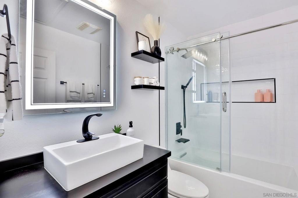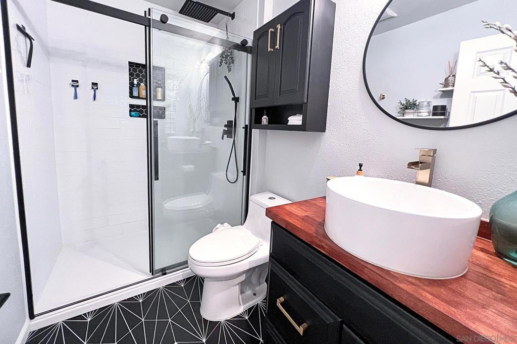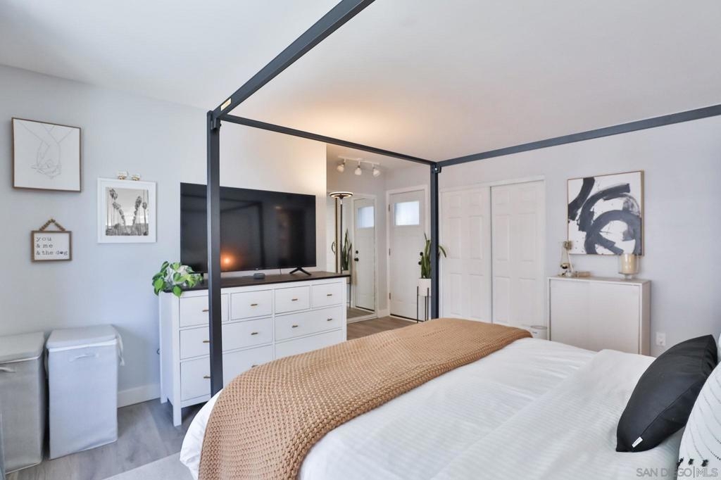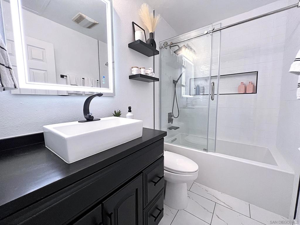 TURN-KEY 3br/2bath top floor corner unit condo in the gated community of Melrose Villas. Features a huge master bedroom and is upgraded from top to bottom with all the perks to make it a home. The kitchen boasts brand new quartz counter tops with modern two-tone kitchen cabinets, farmhouse sink and energy efficient appliances. Vaulted ceiling and fireplace in the living room, luxury vinyl flooring throughout, brand new doors and double pane windows. Two completely remodeled bathrooms featuring a waterfall shower in the master bath and a high-end bathtub in the guest bath with top quality materials and finishes. There is not 1 but 2 balconies for your enjoyment. This unit feels way bigger than it is. It also includes an attic with tons of space to store things as well as storage locker in assigned car port. Cool off in the pool during the hot summer months or relax in the jacuzzi after a long day. Close to the freeway, shopping, schools, and downtown Chula Vista. HOA includes water, so ZERO water bill. A MUST SEE!
