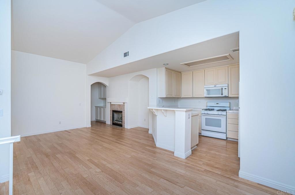 Beautiful 2 bedroom, 2 bath townhome with attached 2 car garage directly across the street from award winning Corky McMillin Elementary! The open concept kitchen opens up to the living and dining room with vaulted ceilings and plenty of natural light. The balcony off of the living room is great for morning coffee and a good book and creates a spacious and comfortable atmosphere. Upgrades include beautiful, newly refinished hardwood floors throughout, fresh paint, including all interior doors, frames and staircase railings and new blinds. The community is meticulously cared for and includes a pool, spa, tons of acres of walking trails, parks, tennis and basketball courts. Restaurants and stores are all incredibly convenient within this master planned community!