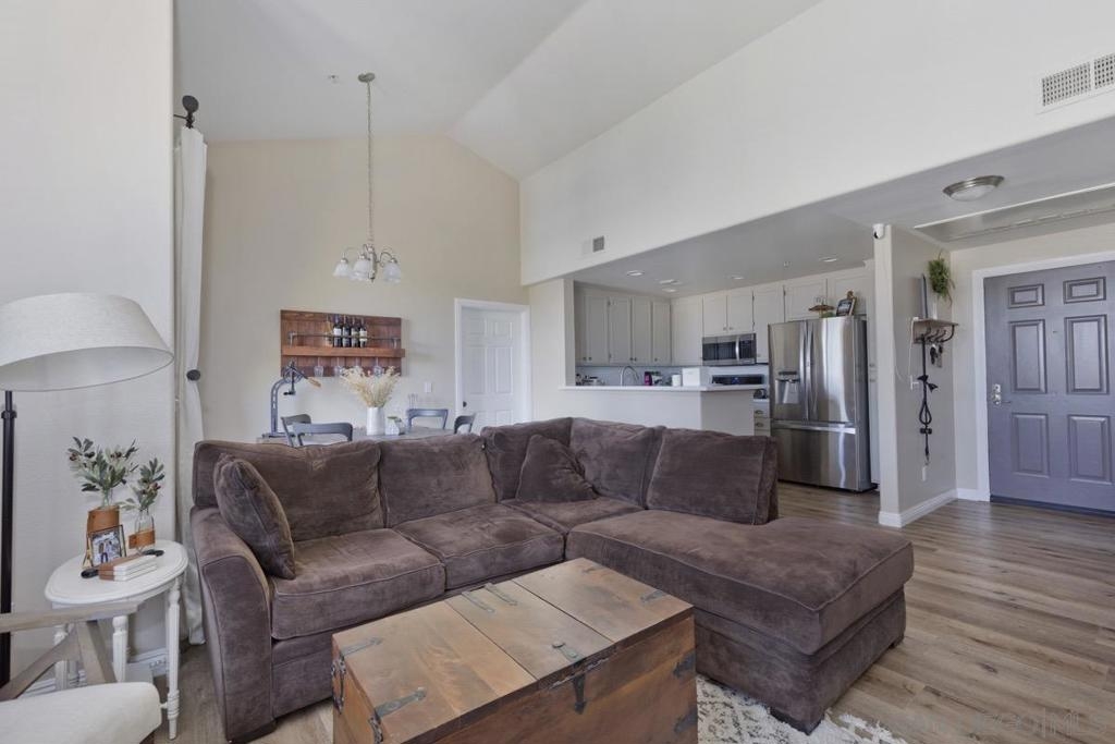 Perfectly updated top level condo in Mer Soleil. Vaulted ceilings in the open living room/kitchen/dining space. Updated kitchen with stainless steel appliances. Tons of counter space and storage. Large Primary with beautiful ensuite. At the other end of the home is the second bedroom and bath with laundry and large storage closet. Large 1 car garage and additional assigned parking. New luxury vinyl plank wood flooring in the kitchen and living space. Two swimming pools and spas with work out room. Ready to call home!