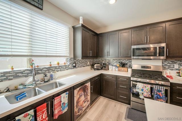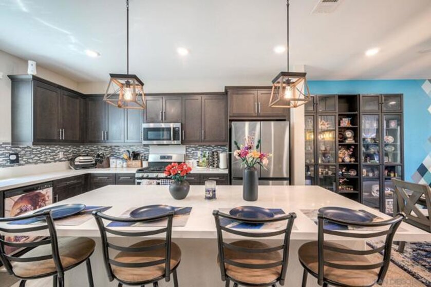 Assumable VA Loan 4.125% available to qualified VA buyers for a refined residence where comfort meets sophistication. The private primary suite feels like a retreat, complete with his-and-hers walk-in closets and a spa-inspired bath. Every detail has been curated for modern living—solar panels for efficiency, split-zone climate control, built-in speaker wiring, fire sprinklers, upgraded flooring, and a large pantry. The home comes turnkey with Samsung appliances, washer/dryer, a smart lock, smart switches, Eufy security, and a MyQ garage system. Life here is elevated by resort-style amenities. Six thoughtfully designed parks—featuring a children’s splash pad, tennis and basketball courts, BBQ pavilions, and a community garden—invite leisure at every age. The pool with outdoor kitchens creates the perfect backdrop for sun-soaked weekends and evening gatherings. Everyday indulgence is close at hand. Stroll to nearby sushi bars, wine bars, and artisanal cafés, or enjoy elevated dining at neighborhood favorites such as Farmer’s Table or Acqua E Farina. Retail therapy is effortless with Costco, HomeGoods, and boutique shopping just minutes away. For families, acclaimed schools—Wolf Canyon Elementary, Eastlake Middle, and Olympian High—ensure excellence in education, while Sharp Chula Vista Medical Center and Scripps Coastal Eastlake offer world-class care moments from your door. This is more than a home. It is a lifestyle designed for those who value sophistication, community, and the ease of having it all.