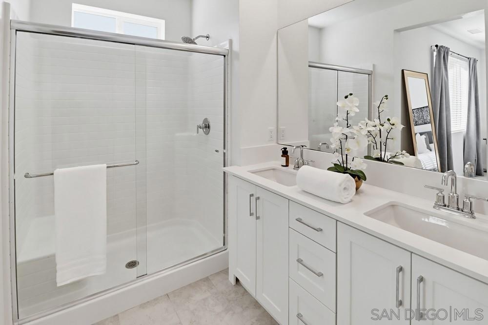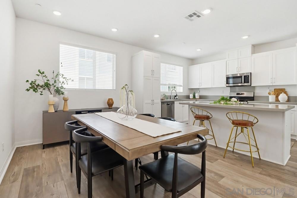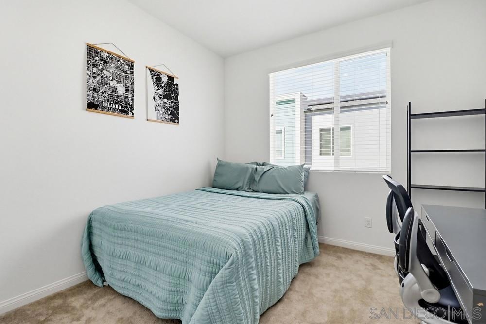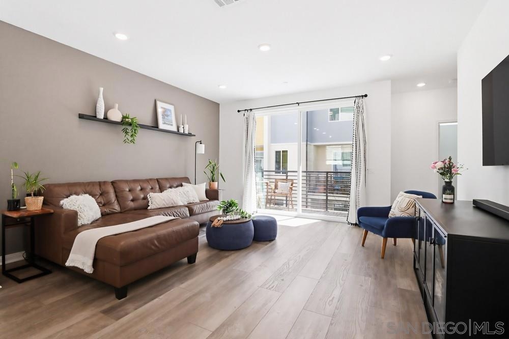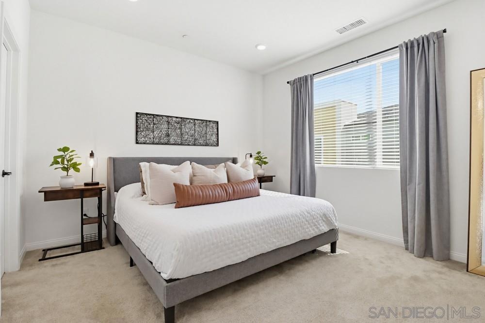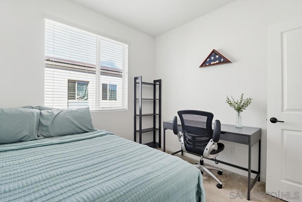 Modern 3-bedroom, 2.5-bath townhome built in 2021 in the Millenia Community of Otay Ranch. Approximately 1,616 sq ft with an open-concept main living area connecting the kitchen, dining, and living spaces. The kitchen features a large center island, quartz countertops, and modern cabinetry designed for everyday living and entertaining. A first-floor open office space provides flexibility for remote work, study, or creative use. The home also includes a first-floor patio and second-floor balcony offering additional outdoor space. Solar system supports energy efficiency and reduced electricity use. The primary suite includes a spacious bedroom, walk-in closet, and dual-sink bathroom. Two additional bedrooms offer additional space for guests, office use, or hobbies. Attached two-car garage with direct entry and additional storage. Located near neighborhood parks, green spaces, and walking paths. Approximately 0.4 miles to Millenia Park and about 1 mile to Otay Ranch Town Center with grocery stores, coffee shops, retail, and restaurants. Convenient access to Olympic Parkway and CA-125 provides connectivity throughout San Diego County. Built in 2021 with contemporary design and modern systems, this home offers updated living in the Millenia Community of Chula Vista.