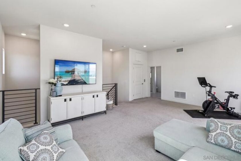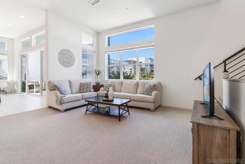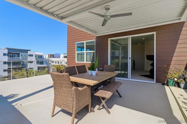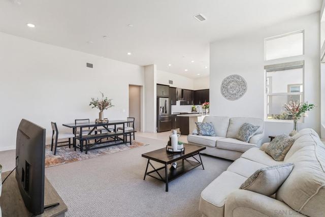 3.87% VA assumable loan for qualifying military and non-military buyers with lender approval! Welcome to 2065 Bravo Loop, Unit 6 in the coveted Pinnacle at Millenia! This spacious four-story Plan 6 townhome offers approx. 2,522 sq. ft. with 3 bedrooms plus a flex/bonus space, 3 bathrooms, an attached 2-car garage, and a PRIVATE ELEVATOR! Built in 2022, this modern home is thoughtfully designed for comfort and convenience. The main level features a bright, open-concept great room flowing into the dining area and chef’s kitchen with quartz countertops, large island, full tile backsplash, stainless appliances, and ample storage. A private balcony extends the living space, ideal for morning coffee or evening gatherings. The primary suite offers a walk-in closet and spa-inspired bath with dual vanities, oversized tub, and glass shower. Two additional bedrooms, a full bath, and laundry complete the third level. The top floor boasts a versatile flex space and full bath—perfect for a guest suite, home office, gym, or family/media room—opening to a spacious outdoor living area with sweeping community views. Set in the vibrant, walkable Millenia master-planned community, residents enjoy tree-lined promenades, parks, shopping, dining, and top-rated schools. The new $85M Chula Vista Arts & Entertainment Center and future proposed University further enhance the area’s growth and appeal. With stylish finishes, generous square footage, and an exceptional location, this home is a rare opportunity in one of Otay Ranch’s most exciting communities.