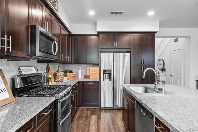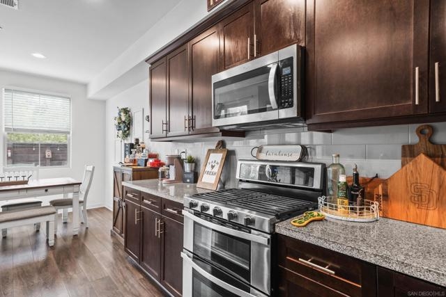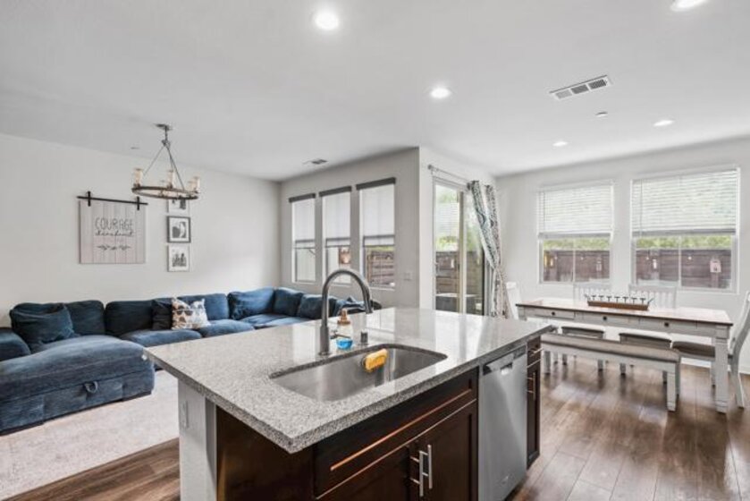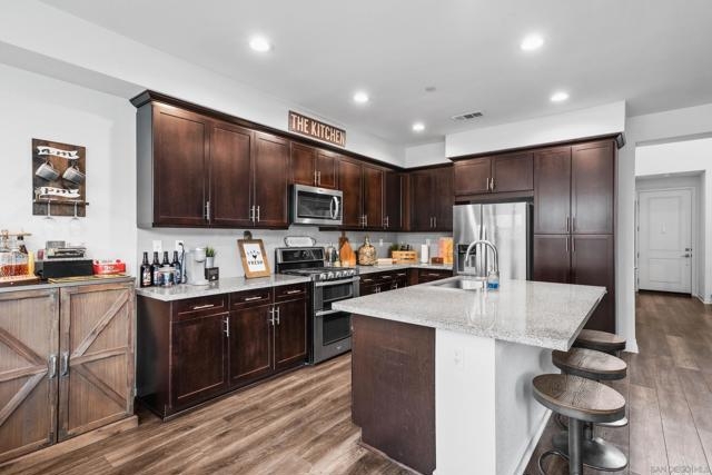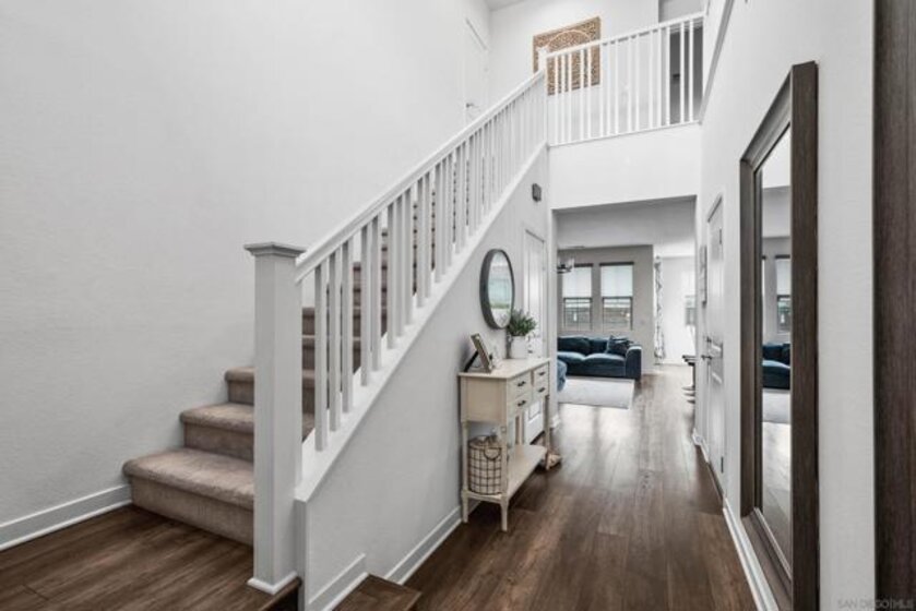 Welcome to 2075 Tango Loop #1, a beautifully upgraded home in the heart of Millenia. Built in 2019, it blends modern design with everyday comfort and function. The open-concept great room flows naturally into a contemporary kitchen featuring shaker cabinetry, granite countertops, a large island, and stainless steel appliances. High ceilings, upgraded flooring, and modern fixtures, add a polished touch throughout. A convenient powder bath on the main level makes hosting easy. Upstairs, the spacious primary suite includes a walk-in closet and spa-like bath with dual vanities and a glass-enclosed shower. Secondary bedrooms and baths carry the same clean, timeless finishes, while the landing at the top of the stairs offers a convenient flex space. A dedicated laundry room and direct-access two-car garage add everyday convenience. Step outside to a private patio, perfect for morning coffee or evening wine. Community amenities include a sparkling pool and hot tub, and access to scenic neighborhood parks, extending your living space outdoors. Set within Chula Vista’s sought-after Millenia community, this home is close to top-rated schools, parks, shopping, and dining-everything you need just outside your door.
