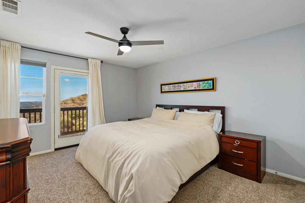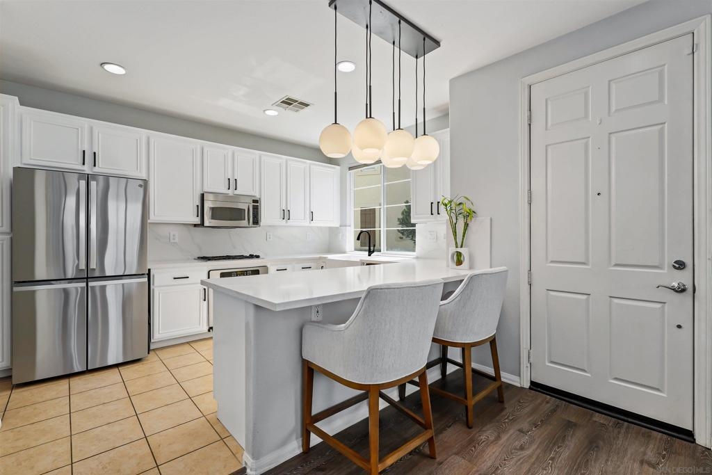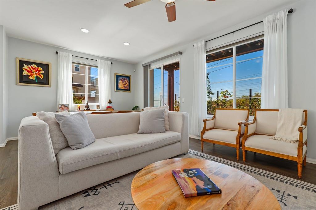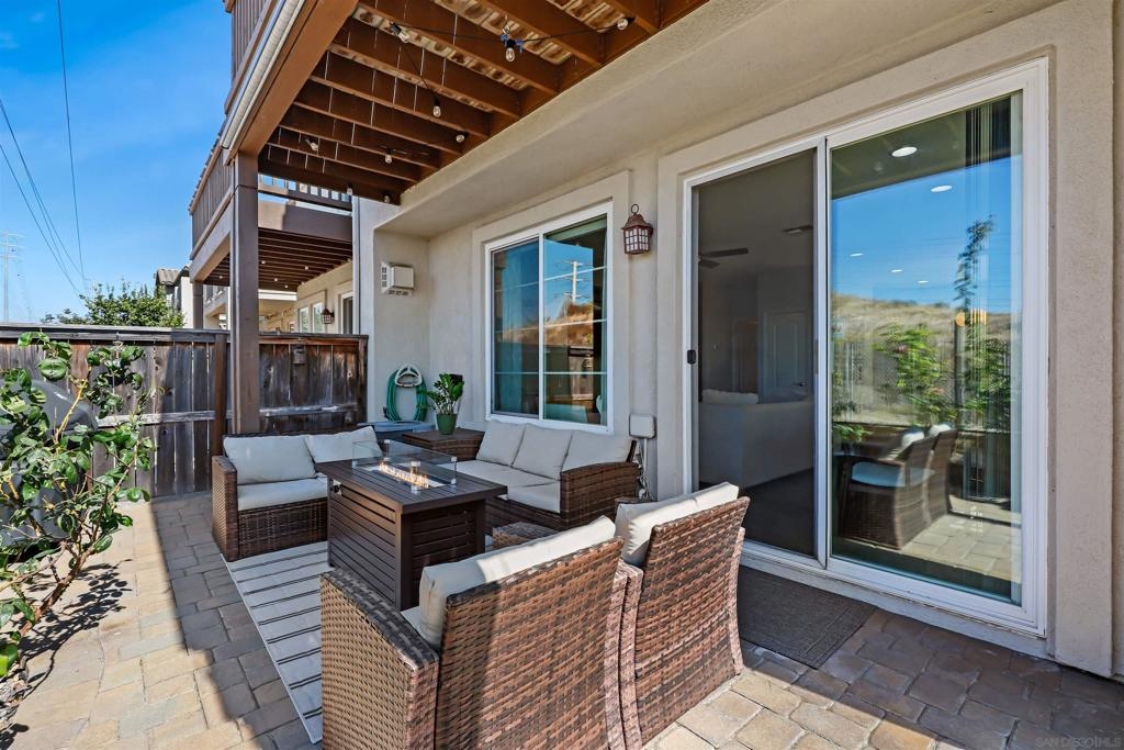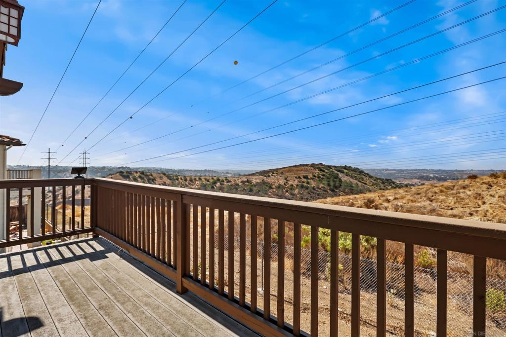 Welcome to your dream townhome! This stunning 3-bedroom, 2.5-bathroom gem is nestled in a serene neighborhood, offering the perfect blend of tranquility and breathtaking views of the ocean and hills from your own private deck. As you enter, the beautifully landscaped front entrance invites you into a cozy open-concept living area adorned with laminate flooring and custom light fixtures. The spacious kitchen, equipped with stainless steel appliances and elegant quartz countertops, makes cooking and entertaining a true delight. Enjoy gatherings in one of the largest backyards in the community, thanks to its coveted end-unit location—ideal for sipping coffee in the morning or hosting friends and family in the evening. Retreat to the spacious primary bedroom, bathed in natural light and featuring a large remodeled bathroom and custom built-ins in the bedroom and linen closets. You’ll love having your own private deck, where stunning views provide the perfect backdrop for relaxation. The two additional bedrooms are equally inviting, offering ample space and sunlight. With convenient access to the community pool, fitness center and gathering areas at the clubhouse. Enjoy close proximity to Mt. San Miguel Park, UC San Diego Health, and a variety of dining and entertainment options, this home is perfectly positioned for your lifestyle. Don’t miss your chance to own this exquisite property!