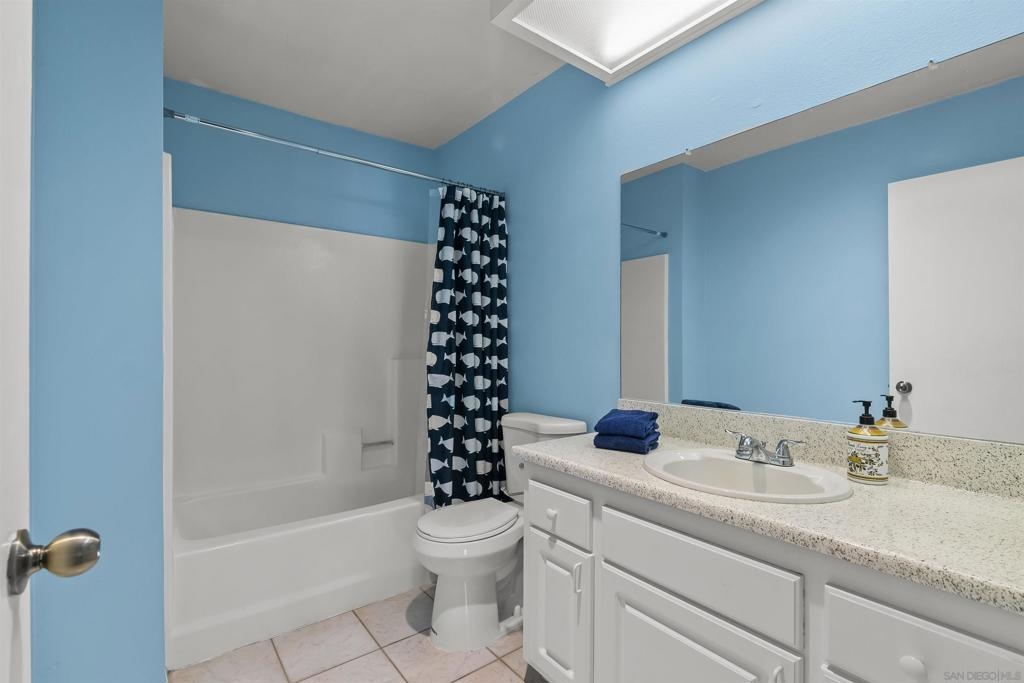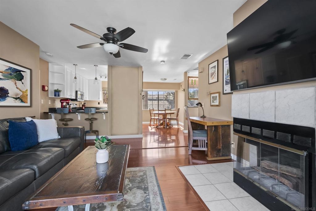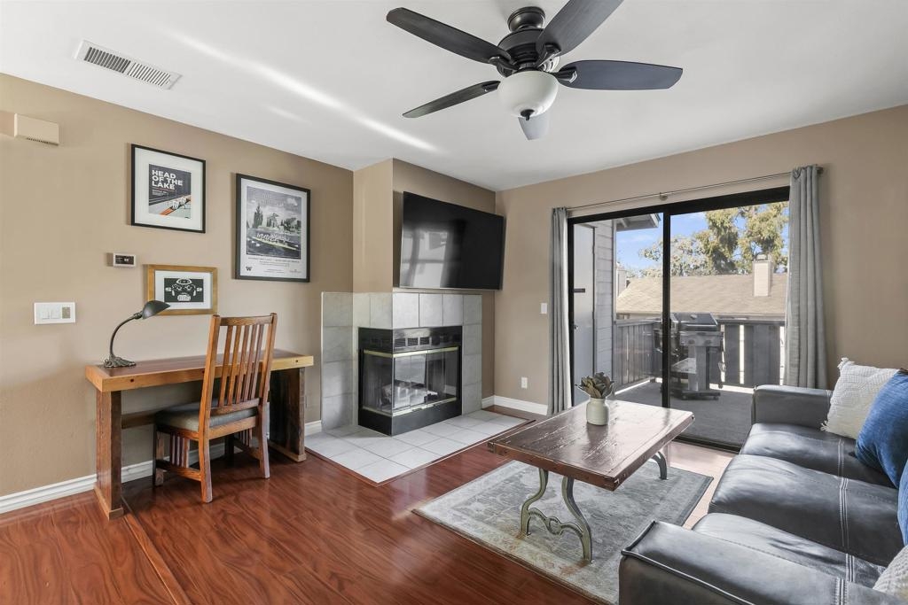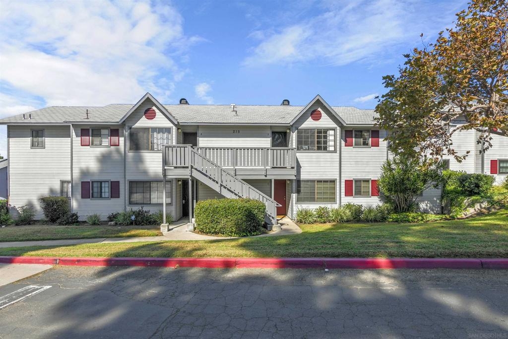 Welcome to 215 Camlau Dr #D, a renovated condo in the sought-after Summerwind community of Chula Vista. In 2020, this unit was updated with kitchen appliances, new flooring, and baseboards, giving it a fresh and contemporary look. In the living room, a wood-burning fireplace provides a cozy ambiance. A large sliding glass door leads to a sizable balcony off where you have open views overlooking the community pool, offering a relaxing retreat and space to grill. The south-facing windowed kitchen is brightly lit and well appointed with appliances by Whirlpool, LG, and Frigidaire. There is ample cabinet space, and it features an open layout and breakfast bar, facilitating easy meal preparation and entertaining. This condo features a split-two bedroom design, with each bedroom and bathroom located on opposite sides of the home. Bedroom windows face to the north and provide open views of the community. For parking convenience, this home includes two spaces - a one-car detached garage and a separate assigned outdoor parking space. The building is VA financing approved. Situated in the desirable Summerwind community, you'll appreciate the spaciousness of the condos in this development. The HOA includes water, trash, parking, and access to the common area amenities. Enjoy proximity to highly-rated Hilltop Park and Trail for outdoor gatherings and hiking, major shopping centers such as the Chula Vista Center, outstanding dining options, and easy access to major freeways for convenient commuting throughout San Diego County.