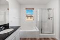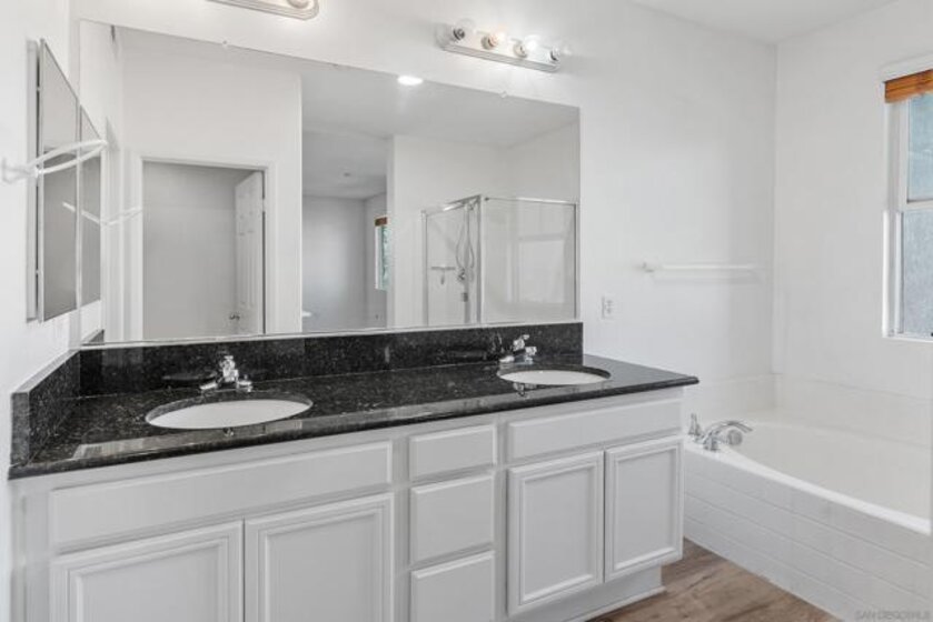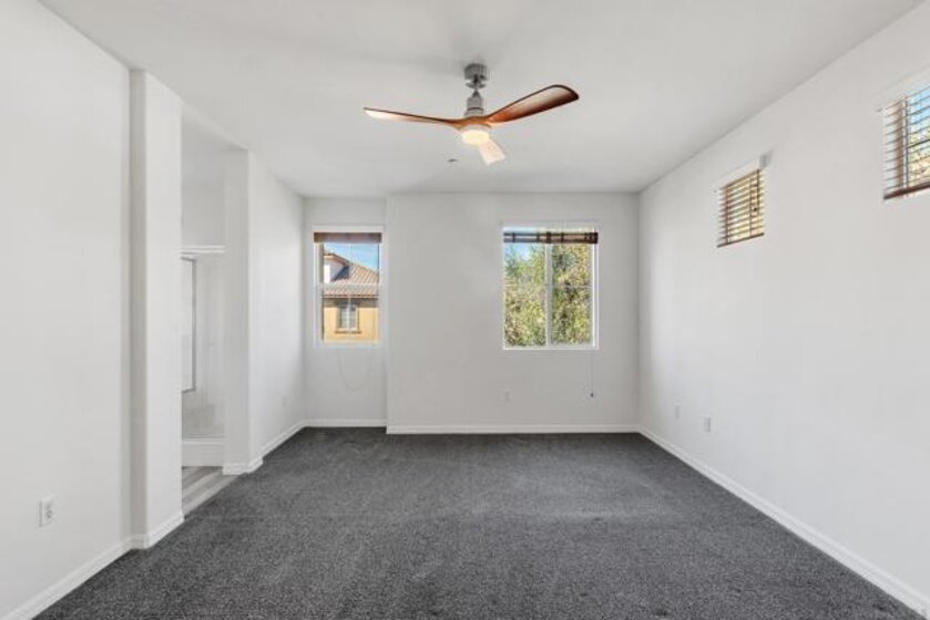 Enjoy luxurious, resort-style living year-round in this light & bright end-unit townhome with no neighbors above or below in The Summit! This move-in-ready 3 bedroom, 2.5 bathroom with attached 2 car garage is clean as a whistle, with new interior paint and tasteful upgrades throughout, including rich wood flooring downstairs with plantation shutters and crown molding. Open floor plan downstairs with powder room and direct access to garage off the rear. Upstairs features three bedrooms and two full bathrooms, including a large primary suite with huge walk-in closet! Also upstairs is a laundry room with washer & dryer that convey with the home. Forced air heating and a new AC unit too. Prime location close to 125, shopping, restaurants & community parks. Pool, spa, clubhouse and fitness center! See remarks for more info. Enter through the front door and you'll be invited into an open living space that features a large family room connected to kitchen and dining area. Toward the rear of the unit are the stairs leading up to the bedrooms, half bathroom, closet and access to the two car garage. Family and dining rooms feature rich wood flooring, plantation shutters and crown molding. The kitchen is open to the living space and features stainless steel appliances, solid Corian counters and lots of cabinetry. Head upstairs, where there are three bedrooms, two full bathrooms and laundry room. Large primary suite off the front of the unit has a remodeled bathroom that includes dual sink vanity, walk-in closet, separate glass-enclosed shower and tub, and a water closet. Secondary bedrooms located off the rear of the unit share a large bathroom with dual sink vanity and a shower/tub combo. Located in a secure, gated neighborhood with 24/7 security, this residence offers resort-style amenities, including a sparkling pool, spa, clubhouse, fitness center, and green spaces. Walk to nearby schools, parks, and popular retail and dining destinations such as Vons, Starbucks, Walgreens, Home Depot, Walmart, Otay Ranch Mall, AMC Theaters, and more!