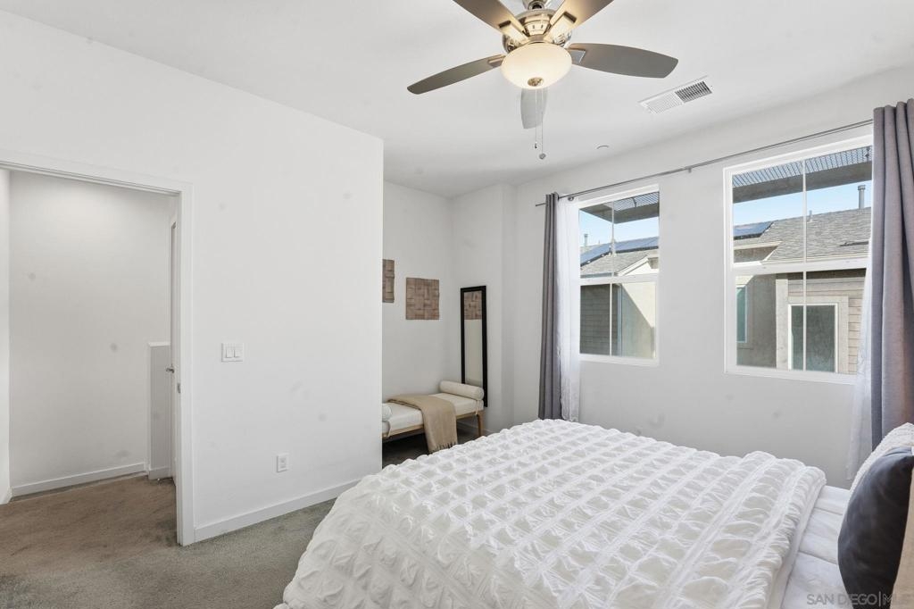 Amazing as the price includes 10-panel solar system, and an installed Car Charger Station in the garage a $25,000 value. This is a stunning tri-level condo located in the highly desirable, newer development of Millenia in East Chula Vista. Freshly painted and move in ready, this contemporary 3-bedroom, 3-bathroom home basis a spacious and versatile floor plan, perfect for modern living. The open-concept main level is filled with natural light and offers seamless indoor-outdoor flow to a private balcony, where you can take in breathtaking views of the surrounding area. The gourmet kitchen is equipped with sleek stainless steel appliances, quartz countertops, and ample cabinet space, making it a chefs dream. Each bedroom is generously sized, with the primary suite offering a serene retreat complete with a walk-in closet and spa-like en-suite bathroom. The Millenia community is rich with amenities, including parks, trails, and convenient access to shopping, dining, and top rated schools. With its prime location, stylish design, and panoramic views, this trip-level condo is the perfect blend of luxury and convenience in the heart of East Chula Vista. Don't miss the opportunity to call this exceptional property home!