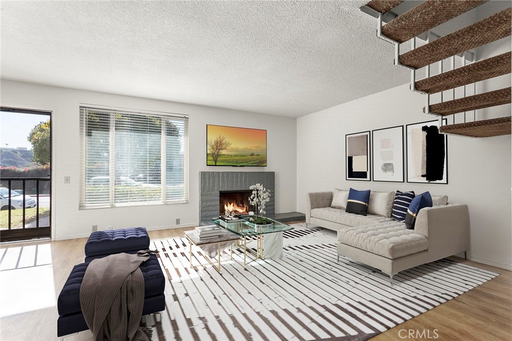 FHA/VA Eligible. Low taxes!!! Stunning Rancho Rios two story, end unit on a desirable corner lot with lots of natural light and situated in a prime location with two parking spots! Downstairs is an open plan family room with a cozy fireplace, dining room and upgraded kitchen with stainless steel appliances and quartz counter tops. The family room has a large sliding door that leads to a large fully fenced private patio and full size separate laundry room with storage. Upstairs you will find an additional three spacious bedrooms and a full bath. One will also appreciate the newer dual pane windows! This community has one of the lowest HOA fees in the area and features well maintained walking areas, a beautiful park and sparkling pool just a few steps away. Also included is 2 parking spots (one covered). The location is within walking distance to dining and shopping as well as minutes away from the 805, 5, and 905 freeways.