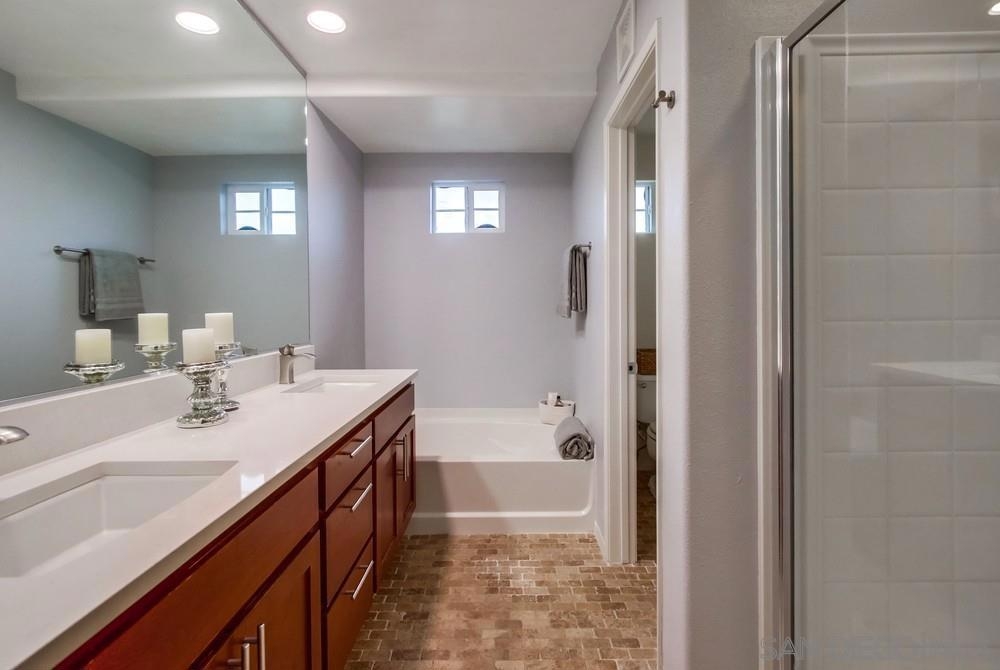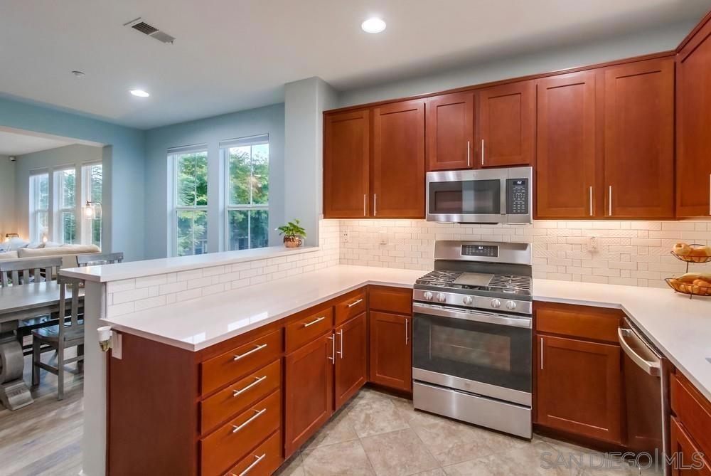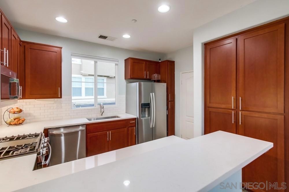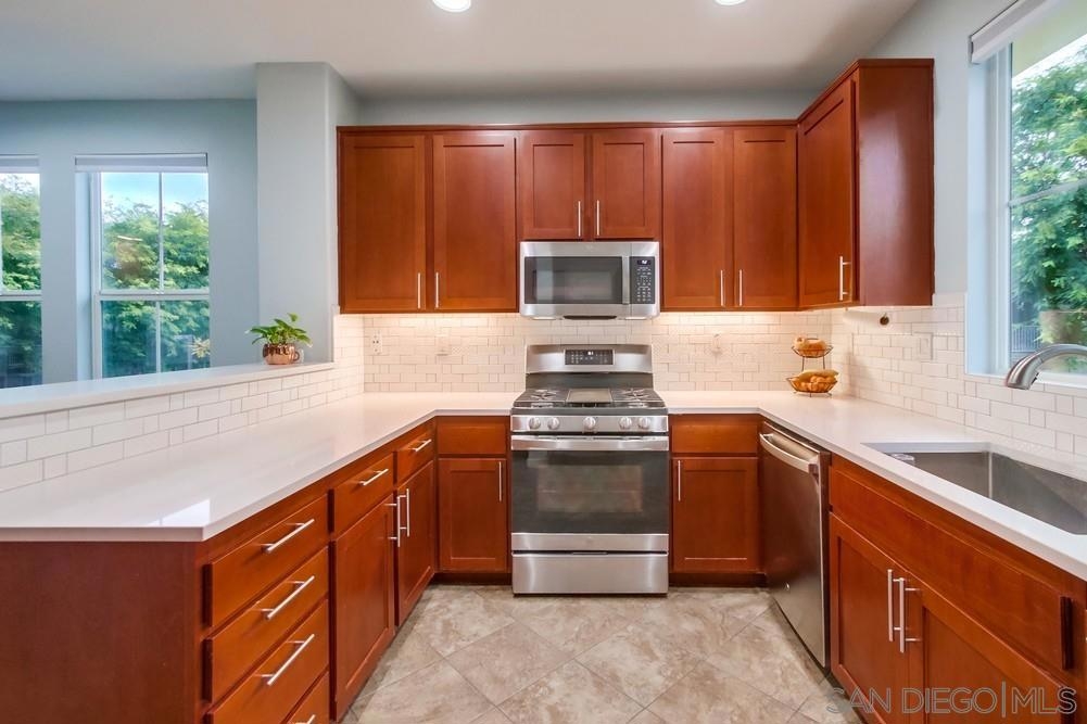 Updated light & bright corner unit townhome in Greystone. Features luxury vinyl floors, quartz countertops, newer stainless steel appliances, newer washer/dryer, brand new carpets & paint. End unit location provides additional windows for extra natural light & increased privacy w/only 1 shared wall. Main level includes 1/2 bath, laundry room off the kitchen & balcony. Upstairs has a spacious master suite w/tub & shower, 2 more BRs, & full hallway bath. Oversized 2 car garage has 2 separate car entry doors for ease of parking & that creates room for extra storage space, gym, workshop area, etc. Desirable Eastlake community- HOA includes 1 pool/spa & playground... Master HOA provides access to 2 more pools/spas/clubhouse.
