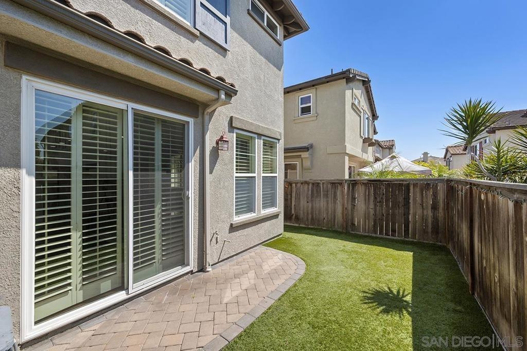Don't miss this bright and airy end-unit townhome in beautiful Belleza of San Miguel Ranch! With no neighbors on one side and a private backyard, this home offers the perfect blend of tranquility and convenience. The inviting living room features a cozy fireplace, Diamond Peak luxury vinyl plank flooring, and a powder room for effortless entertaining. The open kitchen shines with stainless appliances, ample cabinetry, and recessed lighting. Upstairs, plush new “Champagne Glee” carpet adds warmth to both bedroom suites. The expansive primary bedroom features a generous walk-in closet and ensuite bathroom with dual vanities. The second bedroom also offers its own walk-in closet. Enjoy your professionally landscaped backyard with turf—ideal for al fresco evenings or soaking up the sun. Additional perks include custom window shutters throughout, an attached 1-car garage, dedicated utility room with a full-size washer and dryer, and a prime location within the community. This one won’t last! Nestled in the heart of Chula Vista, San Miguel Ranch offers scenic beauty, modern convenience, and a tight-knit community, surrounded by rolling hills and vibrant sunsets. The planned community’s HOA offers a variety of amenities all in one convenient location, including a pool, spa, children’s water park and tot lot, tennis and basketball courts, a gymnasium, and a clubhouse available for weekend rentals. San Miguel Ranch’s unbeatable location offers easy access to the 125 freeway for seamless commutes, with top-tier shopping, dining, and entertainment just minutes away at The Shops at San Miguel Ranch. Families will appreciate the highly rated schools and excellent school districts, further enhancing the area’s strong sense of community, making San Miguel Ranch an exceptional living experience that harmonizes serenity and practicality.