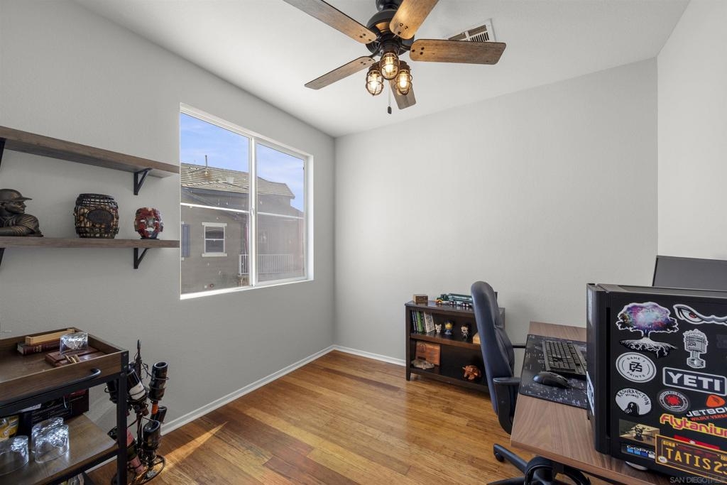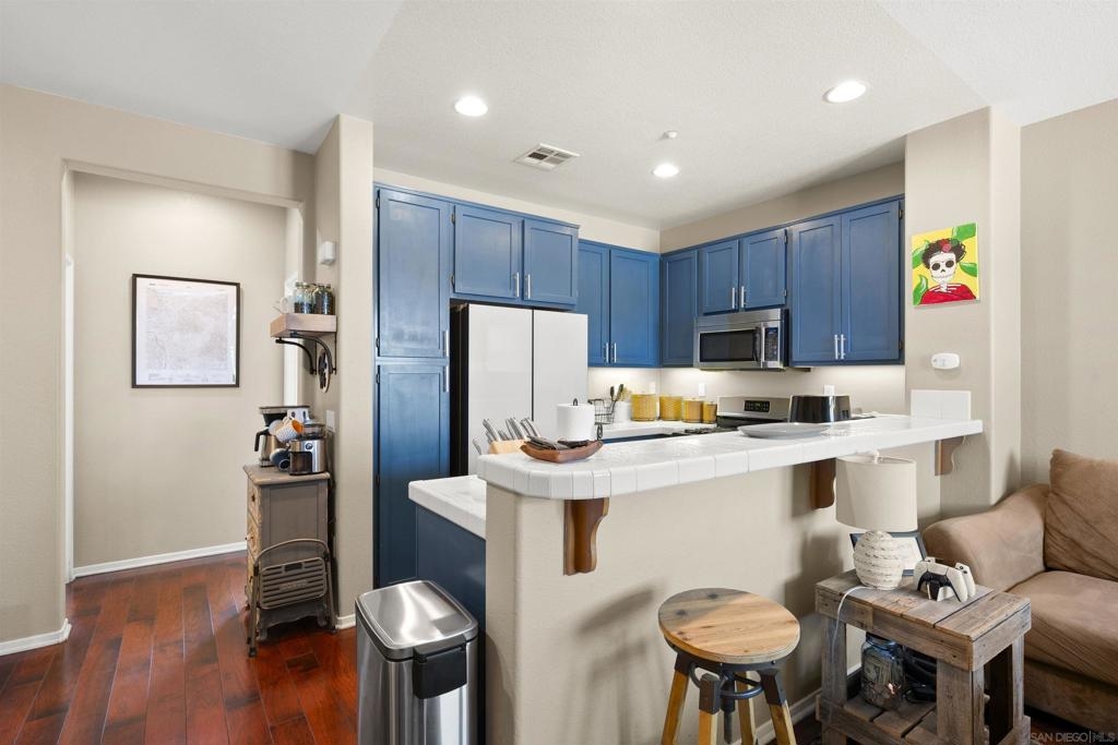 Location and Size!! Over 1400 square feet. This 3 Bedroom and 3 Full Baths tri-level Townhome with an Oversized 2 car finished garage. The location lets you look at San Miguel Mountain from your private balcony. Master Bedroom has new carpet. Walk-in closet. Bamboo floors and wood floors. Washer, Dryer, Refrigerator convey. Unit is located on the perimeter of the complex as opposed to the interior. Prime Location. Enjoy the desirable Greystone at Eastlake Vistas community! Close to all ammenities and easy access to Toll Road 125.