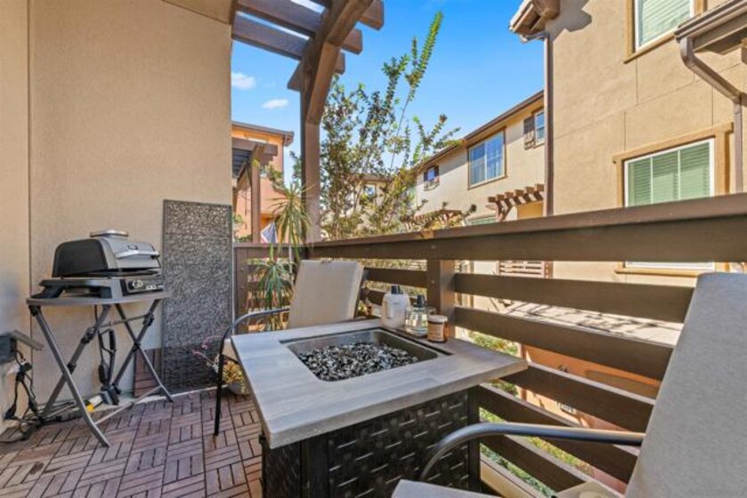 Welcome to this Incredible Move-in Ready CORNER Townhome with LOW HOA! This stunning 2-bedroom, 2.5-bath unit offers the perfect combination of modern comfort, functionality, and style. The open-concept layout features abundant natural light and a private balcony — ideal for relaxing or enjoying your morning coffee/ BBQ weekend. Beautifully upgraded throughout, this home boasts New Luxury Vinyl Plank Flooring with cork foam underlayment, fresh interior paint, and modern bathrooms with Bluetooth speaker lighting fans, and elegant finishes. Additional highlights include recessed lighting with WiFi switches, Ecobee Wifi Thermostat, an Owned the Whole House Aquasana Salt-Free Water Conditioner & Filtration System (8 years of warranty remaining), installed EV Outlet, Tankless Water Heater, Duo Panel Windows/Sliding Door, beautiful granite countertop and Updated Kitchen Appliances, including a dishwasher, refrigerator, washer/dryer, and an electric fireplace. Located in the highly sought-after Eastlake community, residents enjoy resort-style amenities such as a pool, hot tub, multi BBQ area, dog park, and toddler playground — all with a LOW HOA fee. Conveniently situated near top-rated schools, Otay Ranch Town Center, parks, and dining, this home offers an exceptional lifestyle opportunity in one of Eastlake’s most desirable neighborhoods. Don't miss your chance — come see it before it’s gone!