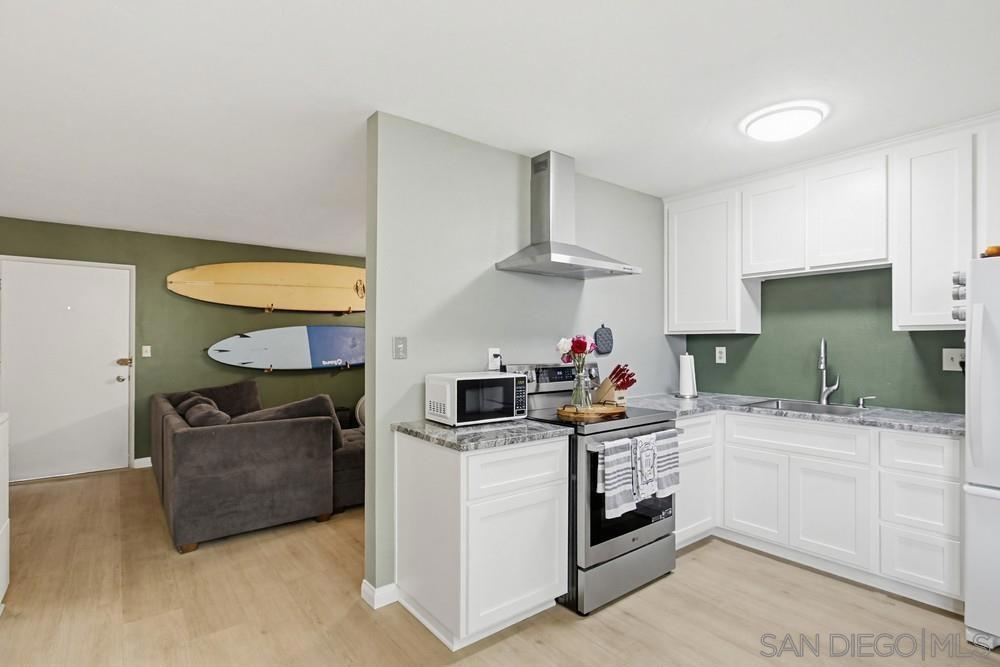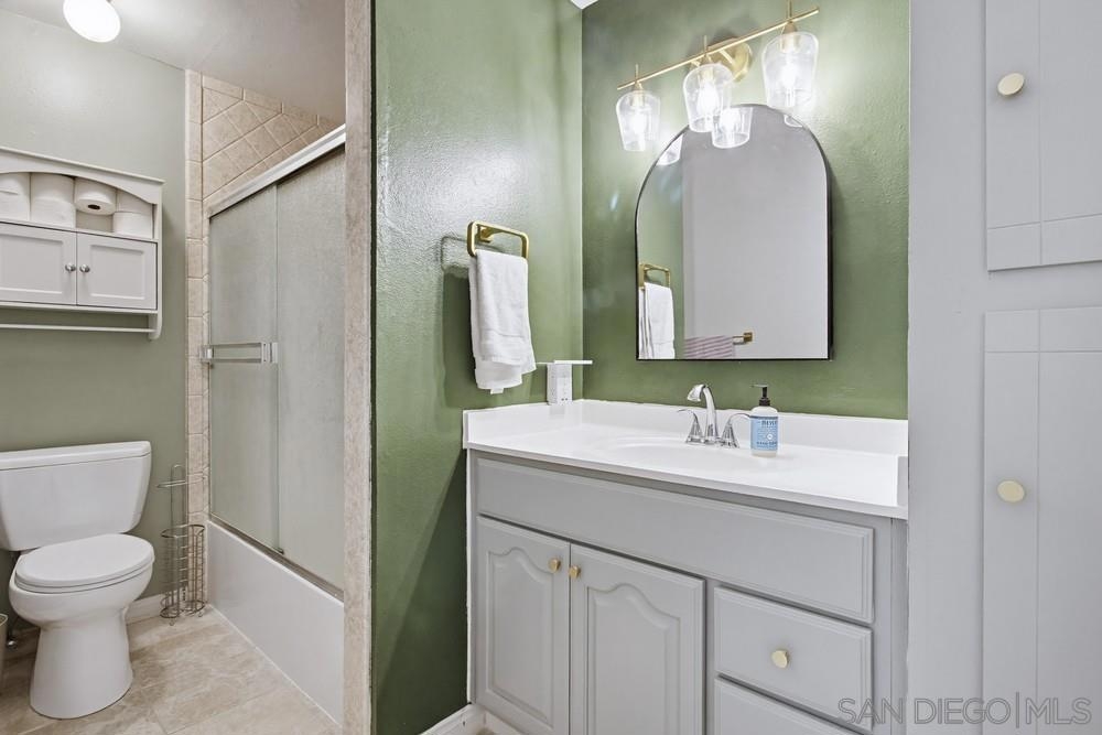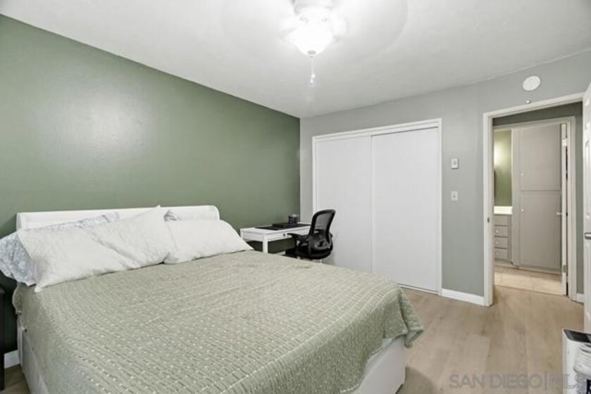 Experience modern comfort in this beautifully updated 1-bedroom, 1-bath ground-floor end unit. Perfectly situated in a gated community, this home has been freshly painted and features a newly remodeled kitchen and an updated bathroom. You’ll love the stylish LVP and tile flooring throughout, complemented by built-in shelving units that provide exceptional storage space. This unit offers added convenience with dedicated parking access and an installed Ring camera for peace of mind. Benefit from community amenities that include a pool, barbecue area, and clubhouse, with water and trash service included. Located directly across from the San Diego Country Club and just minutes from the new Gaylord Pacific resort, this move-in-ready gem is an incredible opportunity. Don't miss out!