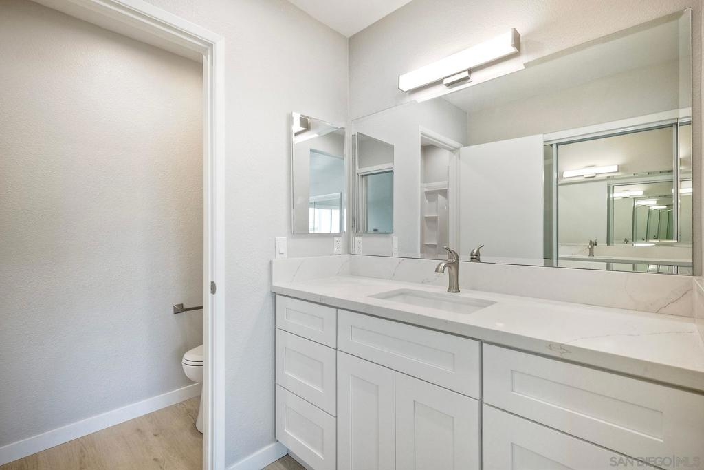 Beautiful remodeled one story condo with NO Mello Roos and Low HOA dues!!! Extensively upgraded with new cabinets, appliances, quartz countertops, flooring, upgraded bathrooms, new paint, lighting fixtures and much more!!! Located on the second floor with no neighbors above!!! Property is close to San Diego Country Club and Third Avenue!!! Must See!!!
