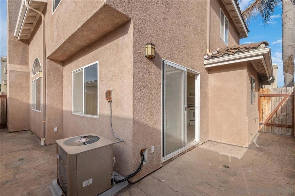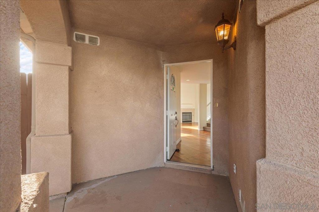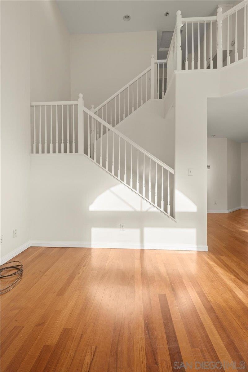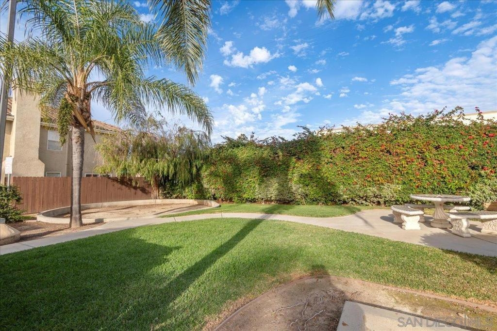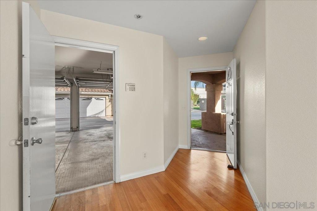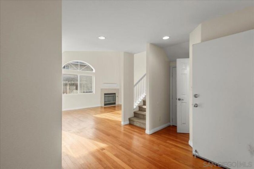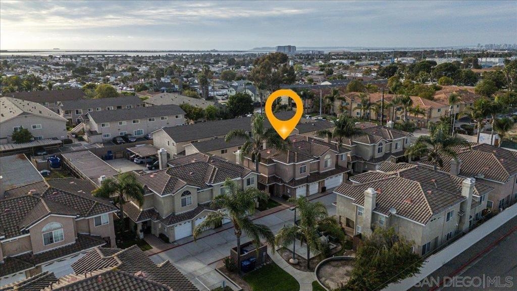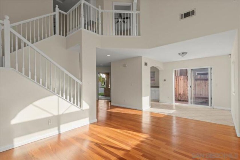 Welcome to a townhouse that lives and feels like a detached home, tucked away in a premier gated community. This 1,400 sq. ft. residence blends dramatic architecture with high-end finishes, beginning with a generous covered entry and private lawn. Inside, the home is bathed in natural light, featuring a living room with soaring 25-foot vaulted ceilings and elegant coved windows. The entire main floor is finished with gleaming, real solid oak flooring, providing a warmth and durability rarely found in modern builds. A charming "Harry Potter" room tucked under the stairs offers clever extra storage or a unique space for the imaginative. The heart of the home is the U-shaped kitchen, perfectly positioned next to a large dining room designed for hosting, with large glass sliders leading to a private L-shaped backyard terrace. Practicality meets luxury in the extra-large two-car garage, which features two separate doors and openers, custom cabinetry, and side-by-side laundry. A beautiful wood-ballustered staircase leads to a generous open hallway with ample storage. Two bright bedrooms, one including a walk-in closet, share a well-appointed bathroom. The massive primary suite serves as a true sanctuary with its own soaring vaulted ceilings, his-and-her closets, and an en-suite bathroom featuring a giant soaking tub. The lifestyle here is unmatched, with a private park and green space directly across the street—ideal for pets, children’s parties, or a quiet morning moment. This location boasts one of the best walk factors in Chula Vista, with stores, gyms, parks,schools, etc...