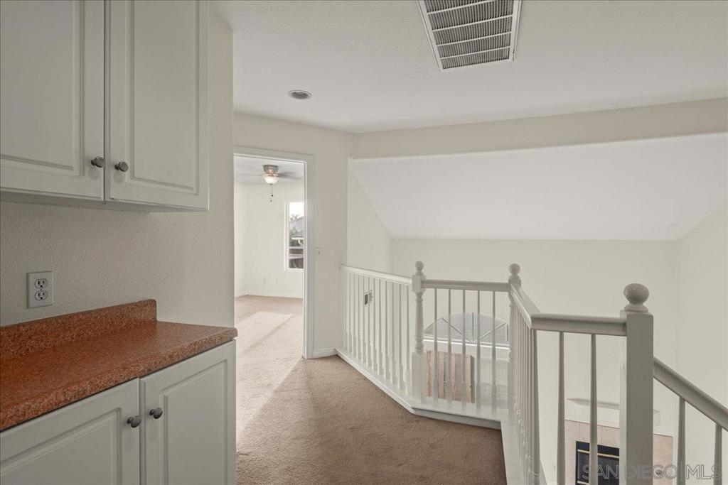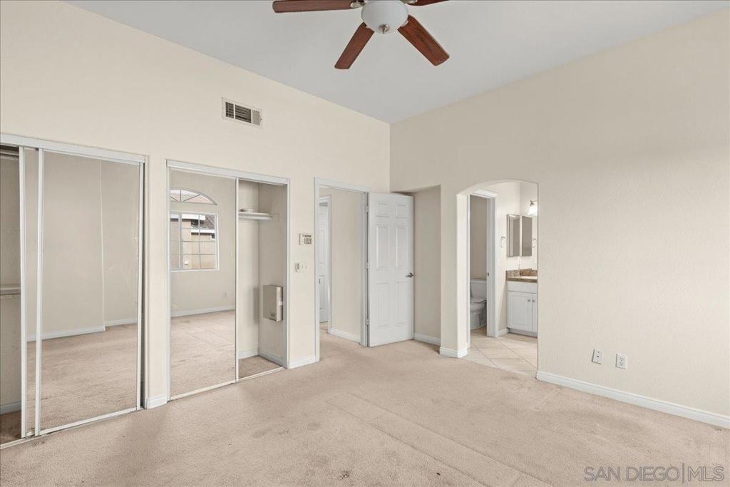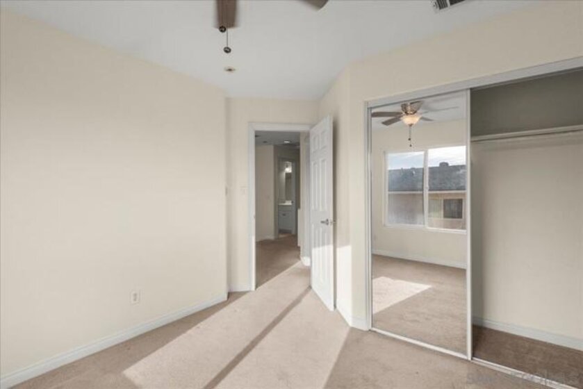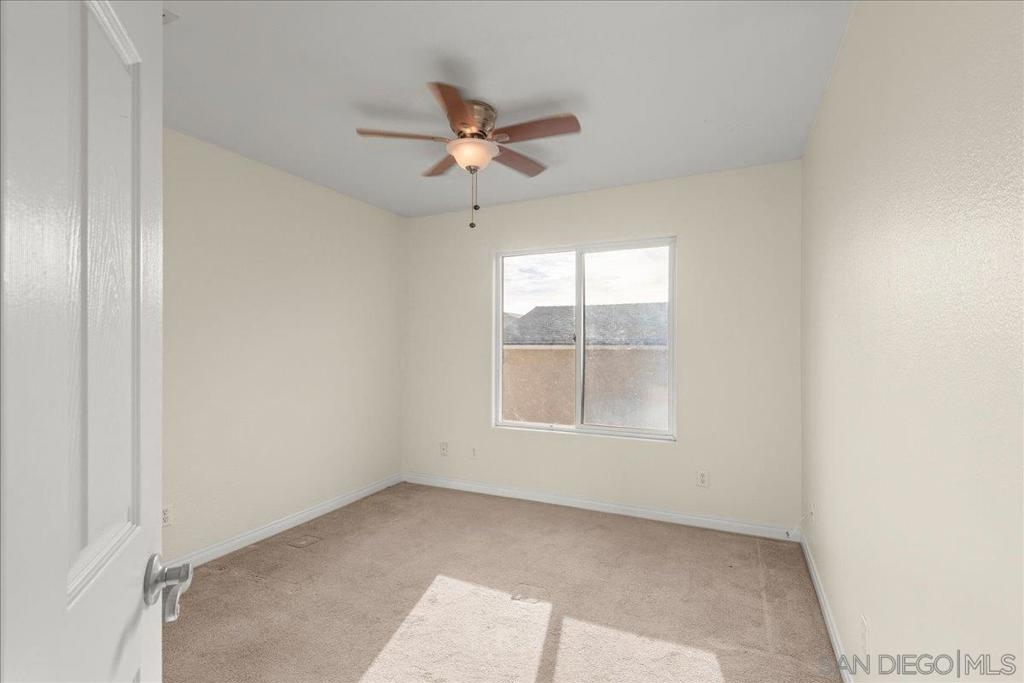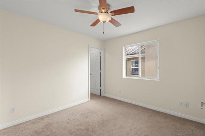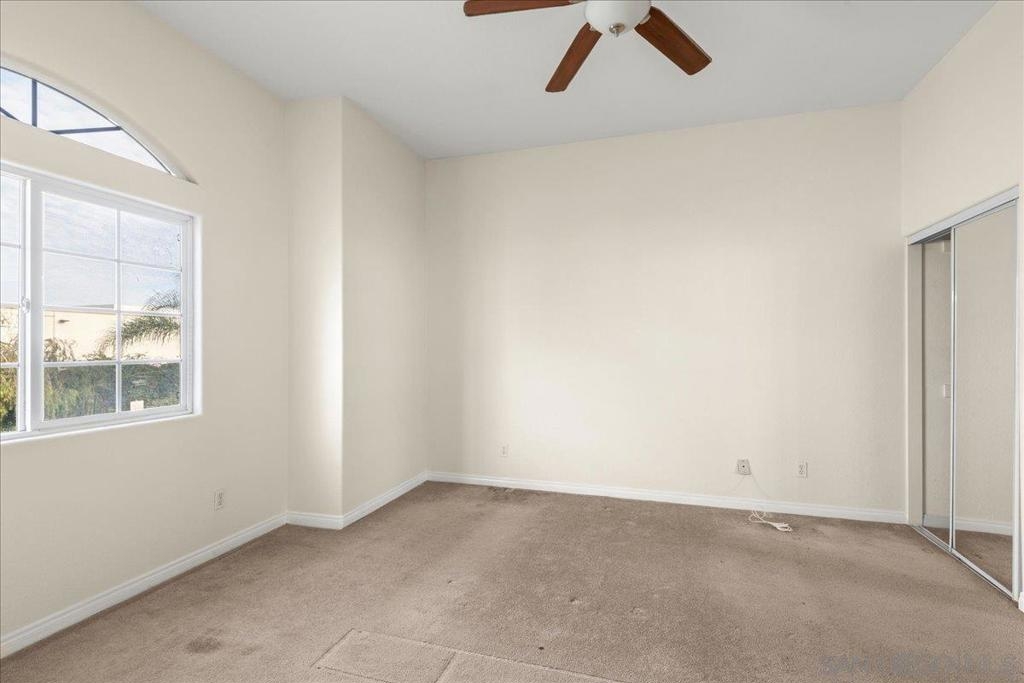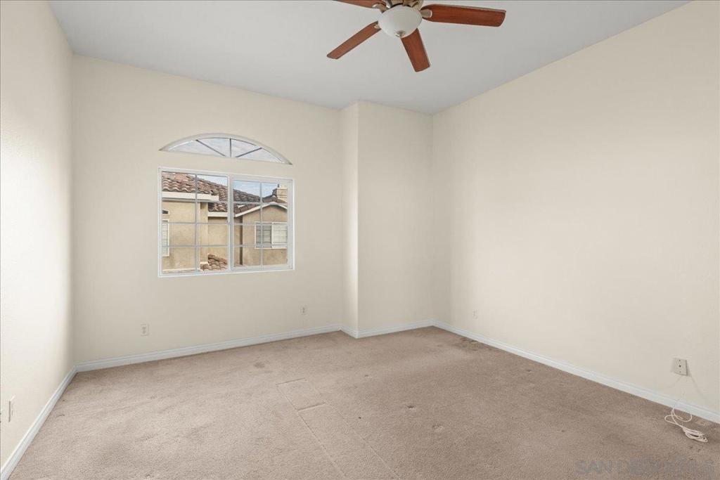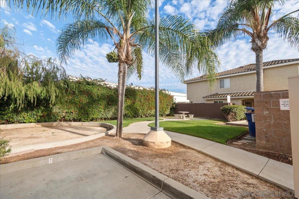 Welcome to a townhouse that lives and feels like a detached home, tucked away in a premier gated community. This 1,400 sq. ft. residence blends dramatic architecture with high-end finishes, beginning with a generous covered entry and private lawn. Inside, the home is bathed in natural light, featuring a living room with soaring 25-foot vaulted ceilings and elegant coved windows. The entire main floor is finished with gleaming, real solid oak flooring, providing a warmth and durability rarely found in modern builds. A charming "Harry Potter" room tucked under the stairs offers clever extra storage or a unique space for the imaginative. The heart of the home is the U-shaped kitchen, perfectly positioned next to a large dining room designed for hosting, with large glass sliders leading to a private L-shaped backyard terrace. Practicality meets luxury in the extra-large two-car garage, which features two separate doors and openers, custom cabinetry, and side-by-side laundry. A beautiful wood-ballustered staircase leads to a generous open hallway with ample storage. Two bright bedrooms, one including a walk-in closet, share a well-appointed bathroom. The massive primary suite serves as a true sanctuary with its own soaring vaulted ceilings, his-and-her closets, and an en-suite bathroom featuring a giant soaking tub. The lifestyle here is unmatched, with a private park and green space directly across the street—ideal for pets, children’s parties, or a quiet morning moment. This location boasts one of the best walk factors in Chula Vista, with stores, gyms, parks,schools, etc...