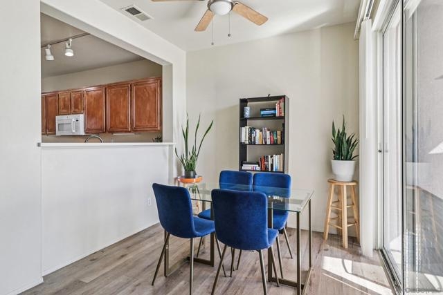 This 2-bedroom, 2.5-bath home welcomes you with airy high ceilings in the living room and an abundance of natural light. The elevated south-facing yard with turf provides a low-maintenance retreat, while inside, luxury vinyl plank floors and a kitchen with white tile counters and distressed wood cabinetry set the tone for relaxed everyday living. Upstairs, the spacious primary suite features vaulted ceilings, a walk-in closet, dual vanity, and a soaking tub, perfect for unwinding after a long day. Additional highlights include dual-pane windows, an attached one-car garage, a reserved guest parking spot, and access to a community playground, pool, and jacuzzi. Conveniently located across from a shopping center, this home offers comfort, convenience, and charm, you’ll love both the residence and the community.
