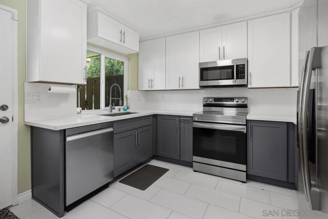 Welcome to this beautifully maintained 2-bedroom, 2.5-bathroom condo nestled in the heart of Chula Vista. This home offers a perfect blend of style and functionality, featuring a spacious living area that flows into a modern kitchen equipped with stainless steel appliances, quartz countertops, and ample cabinetry—ideal for entertaining or quiet nights in. Each bedroom includes its own private en-suite bathroom, providing ultimate comfort and privacy, while a convenient half bath is located on the main floor for guests. Additional highlights include in-unit laundry, a private balcony, and an attached garage. Located in a well-kept community of Bonita View Terraces with amenities such as a pool, you’ll be just minutes from top-rated schools, shopping, dining, and freeway access. Don’t miss the opportunity to own this move-in ready gem in one of Chula Vista’s most desirable neighborhoods!
