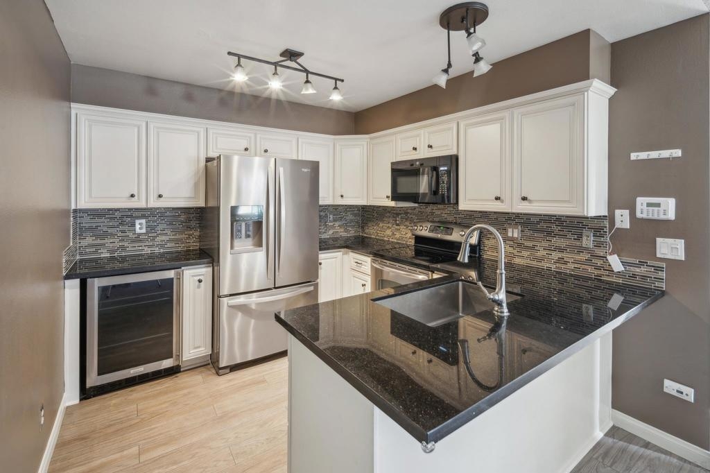 Brandywine Classics' largest three-bedroom condo! The kitchen of this home has been recently renovated and contains improved materials such as black granite countertops, stainless steel appliances, white self-closing cabinets, and an in-unit wine refrigerator. A lovely white fireplace and laminate wood flooring. This condo features a covered patio, one parking spot, and a garage that can accommodate one automobile. Air conditioning, washer, and dryer hookups in the garage!