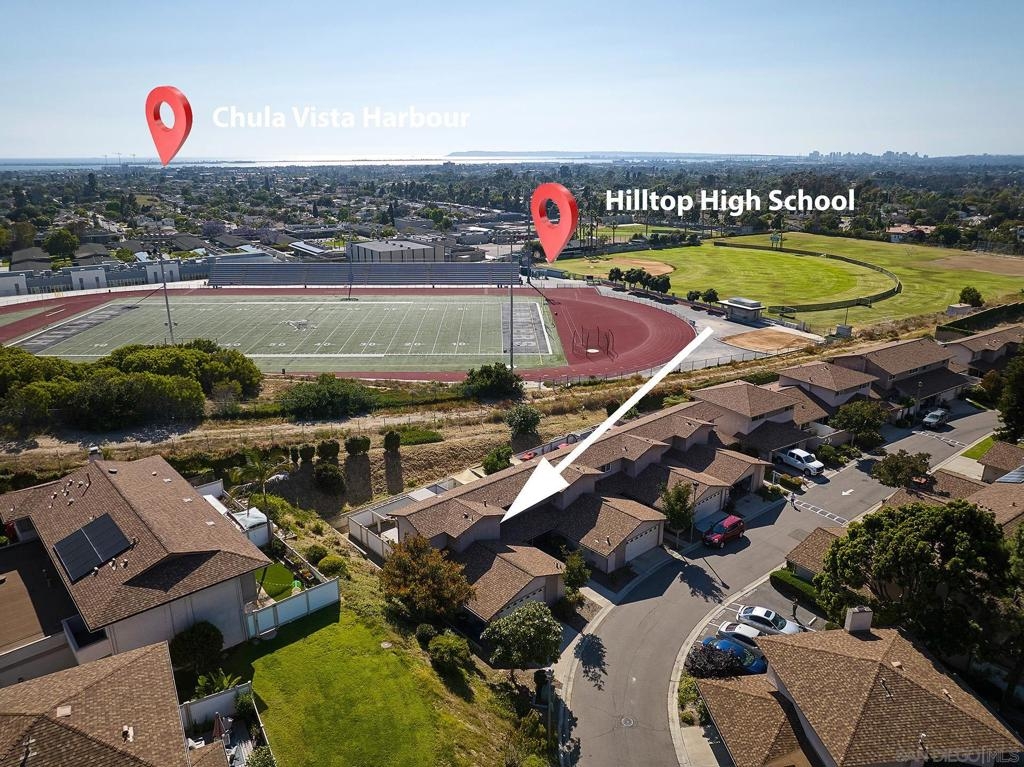 In San Diego County, seize the opportunity for homeownership with this remarkable home in Windsor Heights. The home is zoned as a Single Family Detached/PUD Per County Assessor. One shared common wall. Featuring a spacious floor plan with 3 bedrooms, 2 Full baths, & 1,275 square feet of living space, this two-story end unit offers SFR life style. One full bedroom and bath downstairs. No neighbors above or below. Private backyard for lounging and entertaining. Direct backyard entrance. The property boasts new paint, carpet, upgraded plumbing/electrical features, and a direct access 2-car garage. Oversized garage with built ins and potential office type space. Enjoy a peaceful park-like complex with easy access to freeways, shopping, and schools!