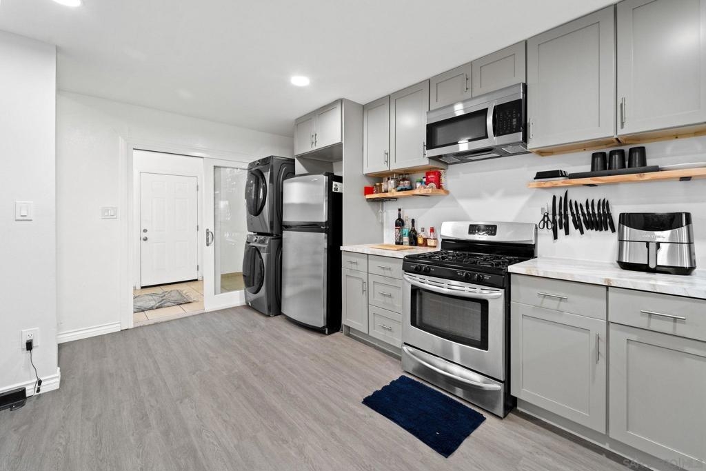 Welcome to your beautifully renovated oasis in the heart of Chula Vista! Nestled in a prime location, this 2 bedroom, 2 bathroom condo offers a perfect blend of comfort, convenience, and style. As you step inside, you're greeted by an inviting ambiance and modern finishes throughout. The open-concept living area seamlessly connects the living room, dining area, and kitchen, creating an ideal space for both relaxation and entertaining. Natural light floods the room, accentuating the sleek laminate flooring and freshly painted walls. The kitchen is a chef's delight, featuring newer appliances and ample cabinet space for all your culinary needs. The master bedroom is a serene retreat, boasting a generous closet, and an ensuite bathroom complete with a luxurious shower and contemporary fixtures. The second bedroom is equally charming, offering comfort and privacy for guests or family members. Both bathrooms have been tastefully updated with modern vanities, and stylish tile work creating spa-like sanctuaries where you can unwind after a long day. Convenience is key with in-unit laundry facilities, providing the ultimate ease and comfort in your daily routine. This condo also boasts low HOA fees, ensuring affordable living without sacrificing quality amenities. Located in central Chula Vista, you'll enjoy easy access to shopping, dining, parks, and entertainment options. Plus, with quick freeway access, commuting to San Diego or exploring the greater Southern California area is a breeze. Don't miss your chance to own this turnkey gem in one of Chula Vista's most desirable areas!