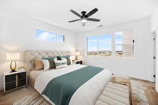 SEE AND COMPARE Experience breathtaking San Diego Bay, marina, and city light views from this rare end-unit home! Enjoy a private turf yard, direct-access 2-car garage, and an open kitchen with a large island—perfect for entertaining. All bedrooms are on one level, plus a convenient laundry room and a guest half-bath. Energy-efficient living with a fully paid six-panel solar system and all-electric appliances. Bose surround sound on the first floor. Low HOA, and no Mello Roos. Unbeatable views. The location offers proximity to six parks within a 3-mile radius, downtown Chula Vista, a nearby bike path along the bay, newly constructed Gaylord Pacific Resort. Get around town quickly. Mall shopping (10 min), Mission Valley (20 min), San Diego International Airport (10 miles), the US/Mexico border (10 miles), E Street Transit Center (minutes), Petco Park (8 miles), Del Mar (30 min). Special financing available, click on link https://mcedge.tv/l36n9p