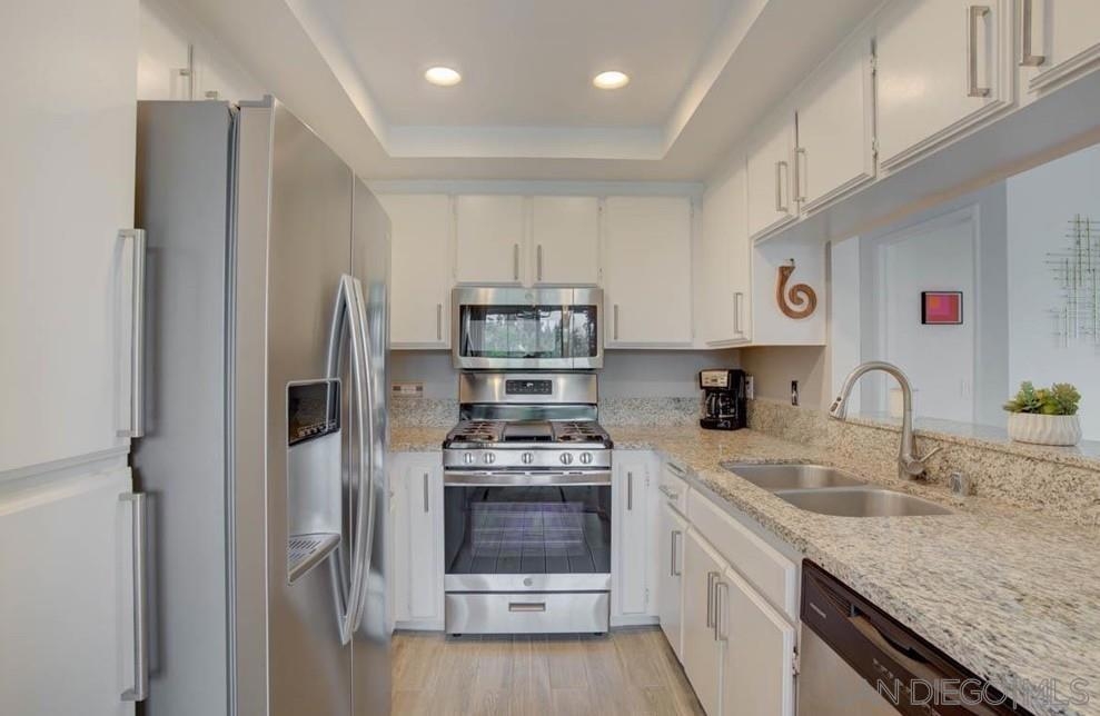 Welcome to your top-floor retreat in the highly sought-after Camelot community of Eastlake! This 2-bedroom, 2-bathroom condo offers panoramic views of the serene Eastlake lagoon, surrounding mountains, and sparkling lake right from every window and your private balcony. Thoughtfully updated, this home features remodeled bathrooms with stylish vanities, custom tile work, a frameless glass shower, and ambient dimmable LED lighting throughout. The kitchen boasts granite countertops, stainless steel appliances, and a new 5-burner stove and refrigerator with water/ice dispenser. Additional highlights include dual-pane windows and slider with factory tint, Venetian plaster accent walls, walk-in master closet, ceiling fans, and in-unit laundry with washer and dryer. Enjoy two parking spots (covered carport + permit), storage closet on the balcony, and a bonus storage cabinet at the carport. The beautifully maintained complex offers tranquil walking paths around the lagoon, a community pool, clubhouse, and is just minutes from parks, schools, shopping, and dining. Whether you’re enjoying the peaceful wildlife or relaxing in your upgraded space, this home blends comfort, charm, and convenience in one of Chula Vista’s most desirable neighborhoods.