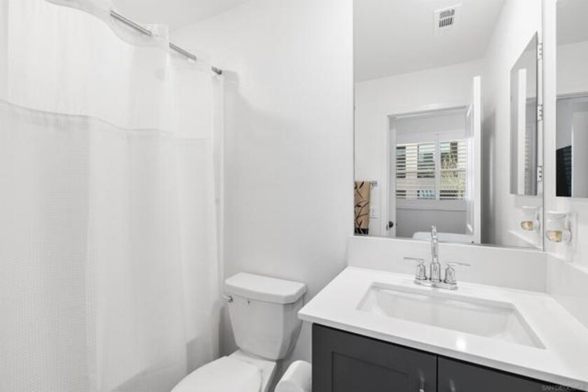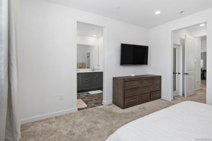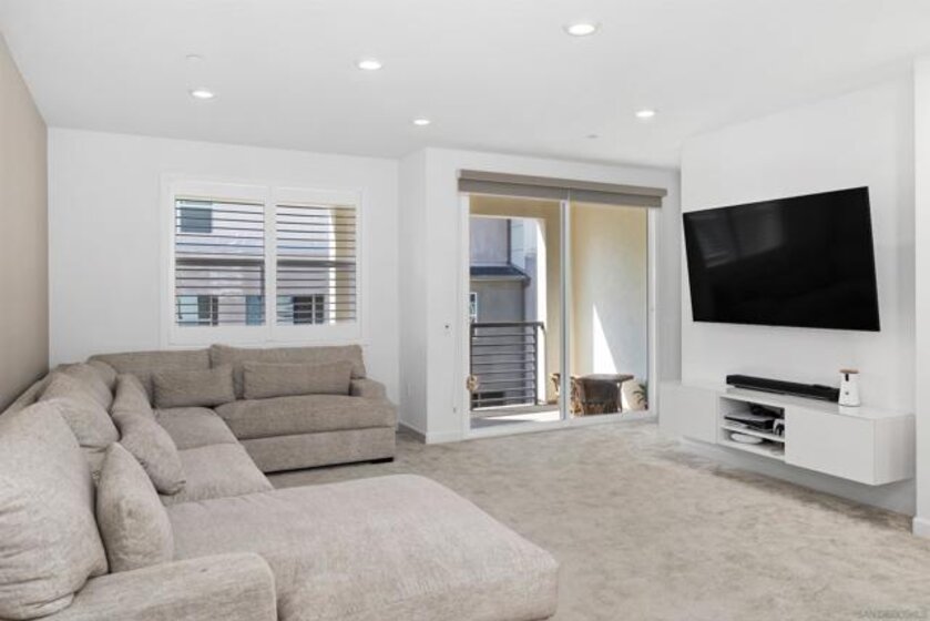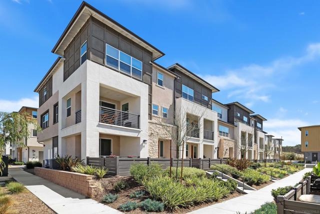 Welcome to this beautifully designed 3-level townhome built in 2024, offering modern living at its finest. The entry level features a private bedroom suite with direct access to the 2-car garage, with a Tesla wall. The open concept main level showcases a spacious living area with abundant natural light, a balcony for outdoor relaxation, and a gourmet kitchen with quartz countertops, stainless steel appliances, and elegant finishes. Designer shutters and dual sheer shades add a touch of style throughout. Upstairs, discover comfortable bedrooms and thoughtful details perfect for today’s lifestyle. Enjoy resort-style community amenities including a sparkling pool, hot tub, pickleball courts, weight room, and playground. A rare opportunity to own a move-in ready home with contemporary upgrades, solar, and exceptional amenities.
